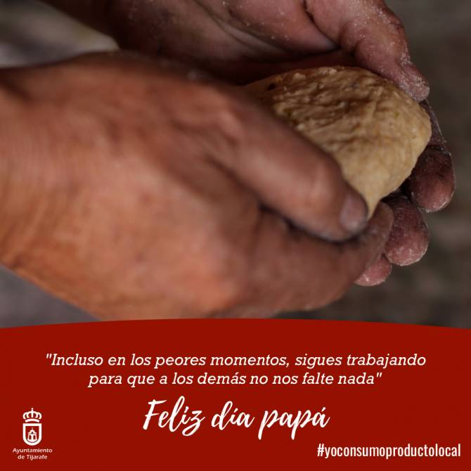 Para ello, se ha aprovechado la celebración del Día del Padre para lanzar no solo un mensaje de felicitación a los tijaraferos que son padres, sino al mismo tiempo, agradecer a los que que se levantan cada mañana para continuar desarrollando su labor, ya sea cultivando sus tierras o elaborando productos que forman parte de nuestra gastronomía, para que los supermercados puedan seguir recibiendo suministros.