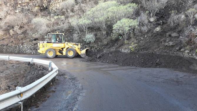 El Cabildo Insular de La Palma, a través de la Consejería de Infraestructuras, que dirige Jorge González, está trabajando para retirar de dos carreteras insulares los restos de los desprendimientos que durante la madrugada se han producido debido a meteorología adversa.