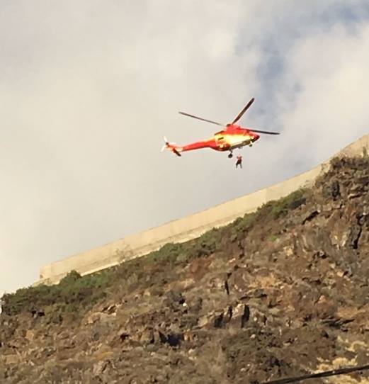 La alarma saltó porque un parapentista se había caído en una zona de difícil acceso en el risco de Puerto Naos. El 1-1-2 activó de inmediato los recursos de emergencia necesarios. En el momento inicial de la asistencia, presenta diversos traumatismos de carácter menos grave.