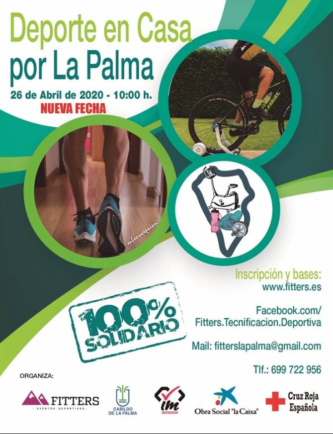 El Cabildo de La Palma, a través de las Consejería de Sanidad y Deportes, que dirige Susana Machín y Raúl Camacho respectivamente, organiza junto a la empresa Fitters Eventos Deportivos La Palma, y con la colaboración de La Caixa y Cruz Roja, la celebración del reto benéfico Deporte en casa por La Palma. La intención es realizar una recaudación solidaria a la vez que se promueven hábitos saludables entre la población de la isla durante los días de confinamiento derivados del estado de alarma por la crisis del coronavirus COVID-19.