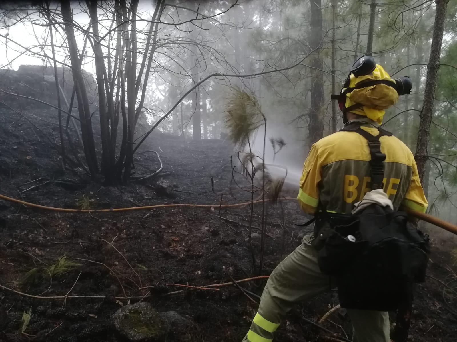 Las primeras acciones de lucha contra el conato sumadas a las condiciones climáticas y de temperatura en la zona influyeron para que la situación no empeorara y para que la ignición no llegara a las copas del pinar existente en esta zona de cumbre de Puntagorda. --Las labores de refresco por parte de personal de Medio Ambiente se van a mantener en la zona del conato hasta que se pueda decretar definitivamente su extinción.