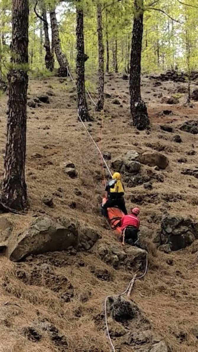 Los Bomberos del Parque Laguna, Agentes de Parque Nacionales, Policía Local, y ambulancia del SUC intervinieron durante el mediodía de hoy para rescatar a un senderista en la zona de Valencia, en El Paso.