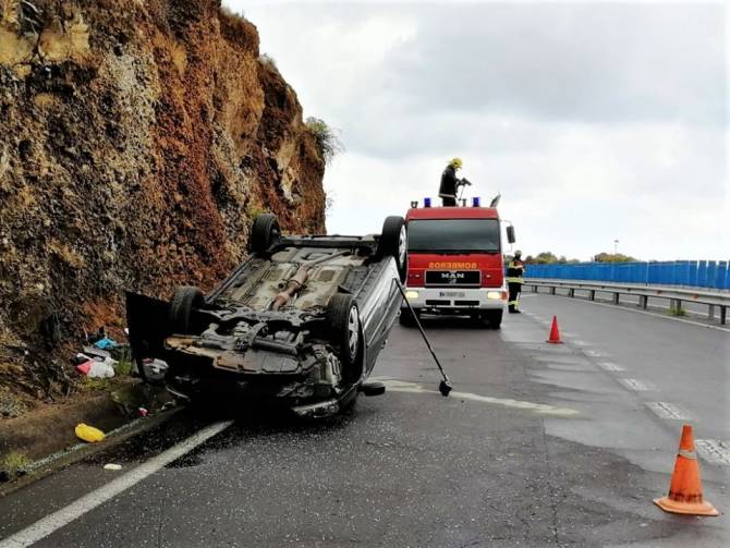 Durante la mañana de hoy los recursos de emergencias de La Palma intervinieron en el vuelco de un vehículo en la carretera de La Grama, en la recta a la altura de el Mercadona, en Breña Alta.