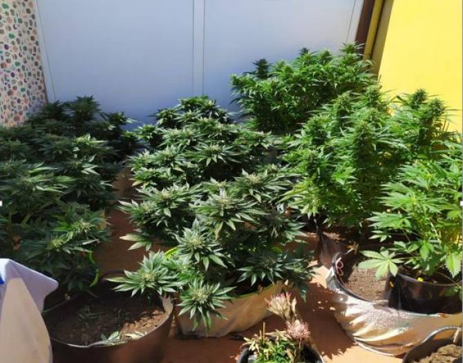 Tras la concesión de la entrada y registro en el domicilio, decretada por la autoridad judicial competente, los agentes de la Guardia Civil no sólo comprobaron la existencia de plantas de marihuana de tamaño adulto en la terraza, sino que en el interior del domicilio descubrieron que tenían un armario tipo “invernadero” de fabricación exclusiva, para el crecimiento de 44 plantas más, las cuales se encontraban en pleno funcionamiento diario con lámpara de calor, extractor, ventiladores y control de temperatura.