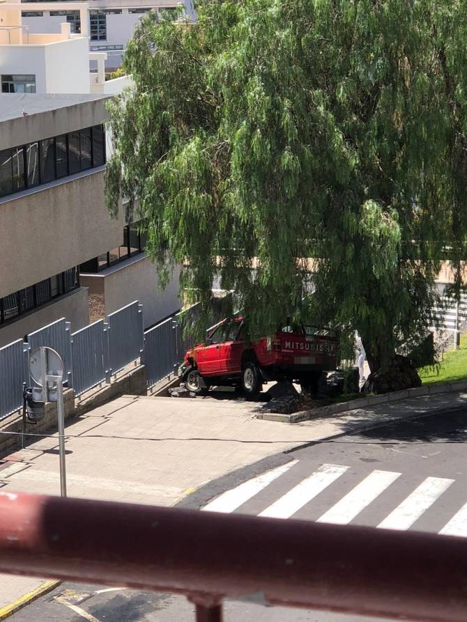 Durante la mañana de hoy un hombre, aparentemente en estado de embriaguez, ha chocado su vehículo a las afueras del Centro de Salud en Los Llanos de Aridane, tras salirse de la carretera.