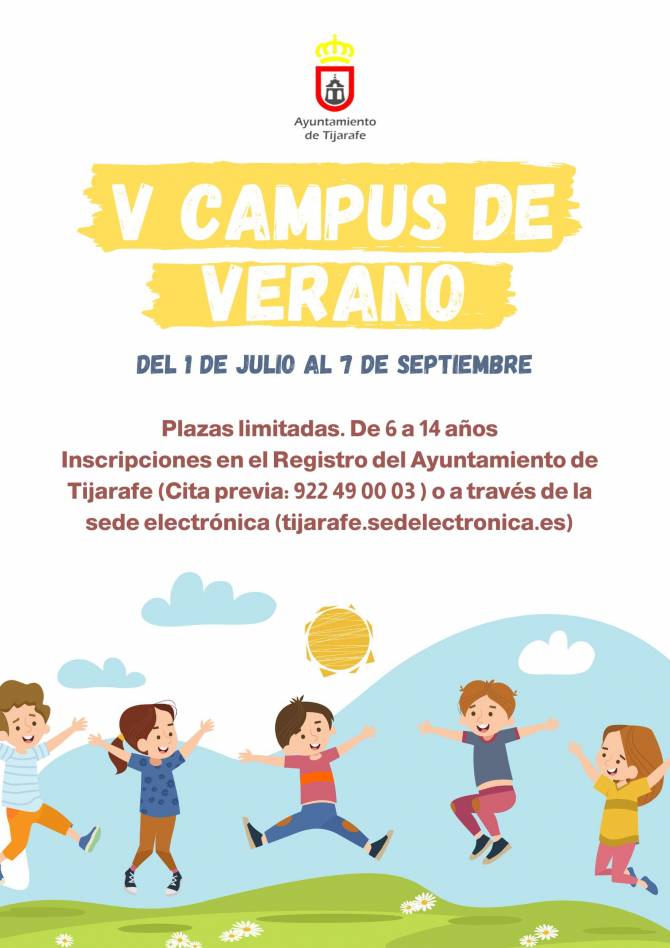 El Ayuntamiento de Tijarafe, a través de la concejalía de Juventud, abre el plazo de inscripción para la quinta edición del Campus de Verano, que se celebrará del 1 de julio al 7 de septiembre. Siguiendo las medidas de seguridad e higiene, este año se establece un límite de 40 niños con edades comprendidas entre los 6 y 14 años, que realizaran todas las actividades previstas en el municipio y al aire libre, siempre y cuando sea posible. Las inscripciones se realizarán en el Registro del consistorio -solicitando cita previa en el 922 49 00 03 o en la página web -, o a través de la sede electrónica.