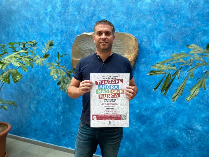 El área de Desarrollo Local del Ayuntamiento de Tijarafe lanza “Tijarafe ahora más que nunca”, una nueva campaña que busca dinamizar la actividad económica, tras la finalización del estado de alarma, impulsando el consumo en establecimientos del municipio. Esta iniciativa, que se desarrollará del 22 de junio al 6 de julio, tiene como objetivo apoyar la reapertura de comercios y reinicio de otros servicios con el sorteo de 10 bonos de 100 euros, 15 bonos de 50 euros y 20 bonos de 20 euros, para consumir en los establecimientos adheridos a la campaña. Para entrar en el sorteo, solo se deberá hacer una compra en el municipio de Tijarafe, rellenar los datos en tijarafe.com/ahora y enviar una foto del ticket de compra.