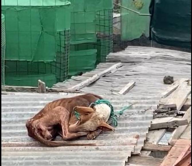 Además, también le fue retirado otro perro de raza podenco canario que se encontraba amarrado encima de unas planchas de aluminio y en las mismas condiciones que el anterior, sin sombra, ni agua ni comida. Sin embargo, y a pesar de los esfuerzos, este segundo perro, una vez trasladado a dependencias municipales, debido al lamentable estado de desnutrición, ya que se encontraba al borde del colapso, semi-incosciente y parasitada, se tuvo que proceder a la eutanasia del animal.