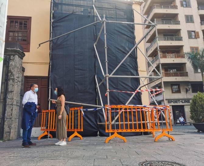 El Ayuntamiento de Santa Cruz de La Palma ha iniciado la restauración del emblemático mural de Nitrato de Chile, ubicado en el inicio de la Calle Real, una actuación que cuenta con un presupuesto de 18.219 euros financiado por el Cabildo palmero y con aportación de las arcas municipales. La obra tiene un plazo de dos meses y está siendo ejecutada por In Situ Conservación y Restauración, una empresa con una reconocida experiencia a lo largo del territorio nacional.