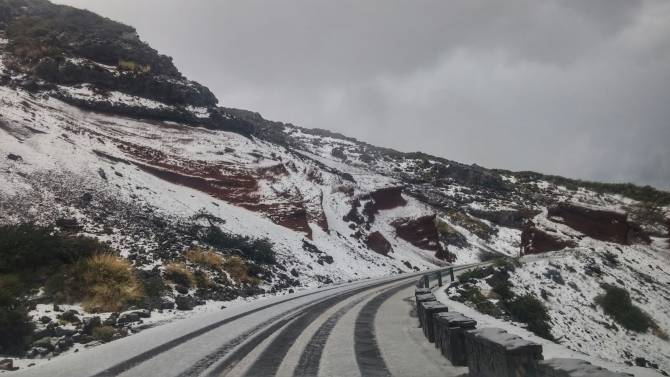 Cierran al tráfico la carretera del Roque de Los Muchachos por desprendimientos y nieve
