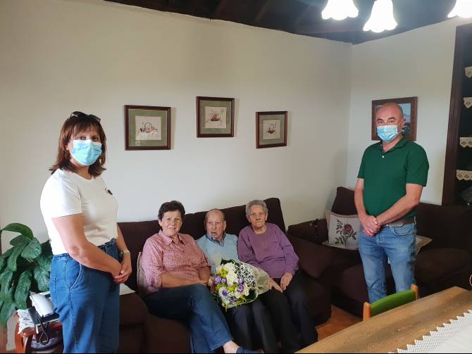 El alcalde Víctor Guerra y la concejal de Servicios Sociales María Eugenia Rodríguez, visitaron a don Laureano y le hicieron entrega de un ramo de flores y una copia de su acta de nacimiento en el año 1920.