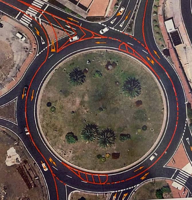 Con esta finalidad, el Cabildo amplía el número de carriles que se incorporan a la glorieta desde la vía exterior, pasando de uno a dos, en detrimento de uno de los de salida. El de la derecha será el carril de incorporación directa para acceder hacia Breña Alta. El otro carril permite también al usuario de la vía salir del municipio hacia el sur pero sin cruzarse con el anterior, además de dar la opción de acceso al muelle, al casco de Santa Cruz de La Palma o realizar un cambio de sentido.