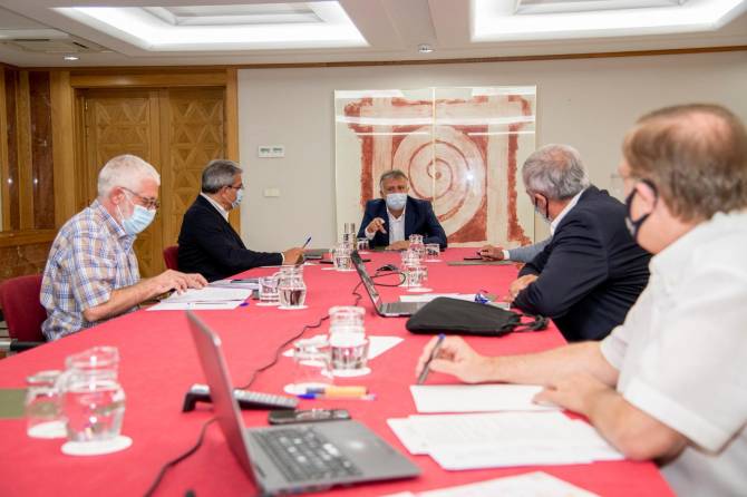 El presidente de Canarias, Ángel Víctor Torres, ha presidido una nueva reunión del Comité de Gestión de Emergencia Sanitaria que ha ocupado toda la mañana de este lunes 24 de agosto, en la sede de Presidencia en Las Palmas de Gran Canaria, donde han intervenido -ya sea de forma presencial o por videoconferencia- el vicepresidente del Gobierno de Canarias y consejero de Hacienda, Presupuestos y Asuntos Europeos, Román Rodríguez; el consejero de Sanidad, Blas Trujillo; el consejero de Administraciones Públicas, Justicia y Seguridad, Julio Pérez; la consejera de Educación, Cultura, Deportes y Universidades, Manuela Armas; y el consejero de Obras Públicas, Transportes y Vivienda, Sebastián Franquis, además de otros altos cargos directivos del Gobierno de Canarias y el grupo de expertos que asesora al Ejecutivo desde el inicio de la pandemia.