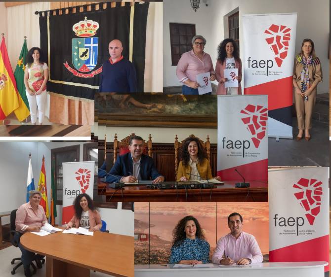 La Federación de Empresarios de Asociaciones de La Palma (FAEP), ha suscrito convenios de colaboración para el desarrollo de un amplio programa de fomento del consumo local con los alcaldes de Santa Cruz de La Palma, Juan José Cabrera Guelmes; su homóloga en el consistorio de Los Llanos de Aridane, Noelia García Leal, además de con los alcaldes de Breña Baja y Puntallana, Borja Pérez Sicilia y Víctor Guerra Hernández, respectivamente.