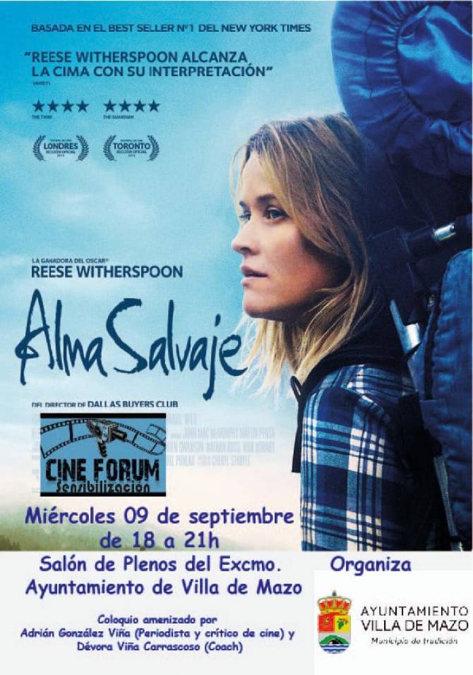 El Ayuntamiento de Villa de Mazo, a través de la Concejalía de Igualdad, que dirige Francisco Javier González, proyectará la película Alma Salvaje, el miércoles 9 de septiembre, a las 18:00 horas, en el Salón de Plenos del consistorio. Este acto se enmarca en las actividades del programa de coaching para la igualdad Quiérete bien y acertarás, y servirá como acto de clausura de la iniciativa.