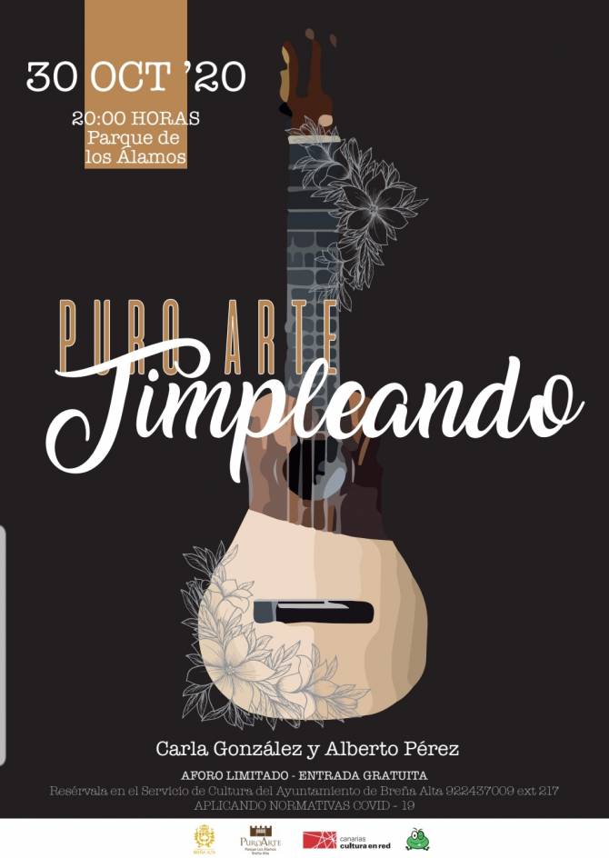 La concejal de Cultura y Fiestas del Ayuntamiento Breña Alta, Patricia Ayut Martín, explica que "nuestra intención es continuar programando al menos un acto semanal, dedicado al arte y la cultura, aprovechando los espacios públicos con los que contamos, que nos ofrecen parámetros de seguridad en la prevención de la COVID-19, complementarios a los protocolos de seguridad, y en el marco de la crisis sanitaria en la que nos encontramos". Los intérpretes Carla González y Alberto Pérez, ofrecerán su espectáculo 'Timpleando', en el que los asistentes al acto podrán disfrutar de un amplio repertorio de folclore canario, vals venezolanos y distintas composiciones de reconocidos timplistas canarios.