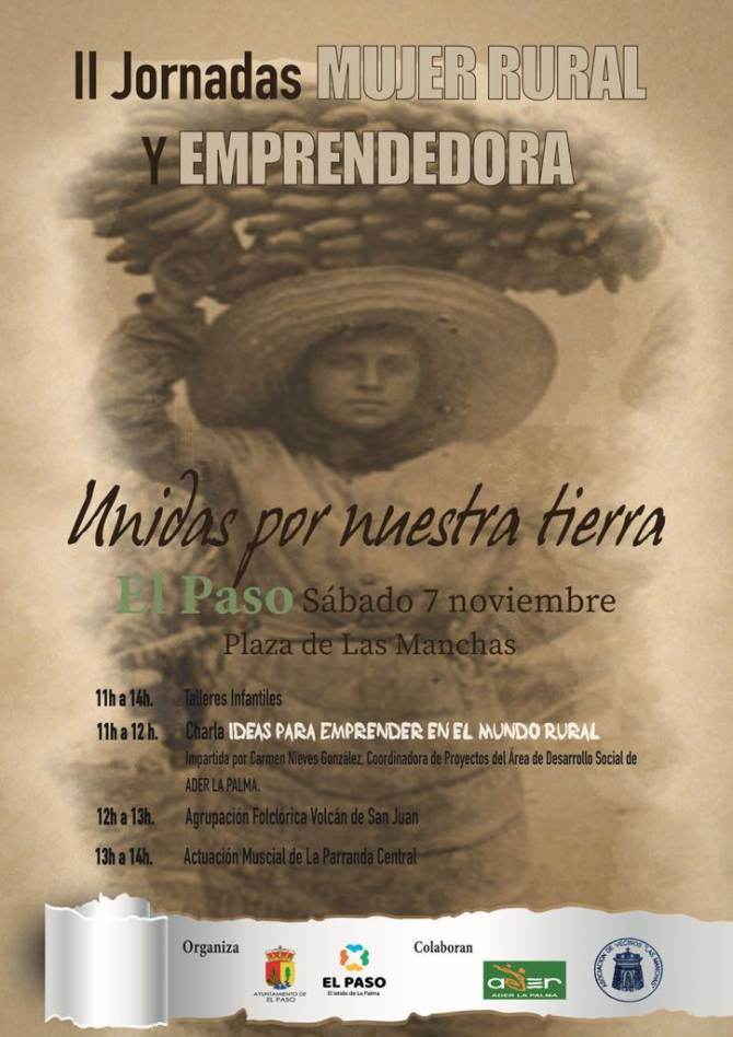 A las 11.00, está prevista la charla “Ideas para emprender en el mundo rural”, la cual será impartida por la coordinadora de proyectos del área de Desarrollo Social de Ader La Palma, Carmen Nieves González.