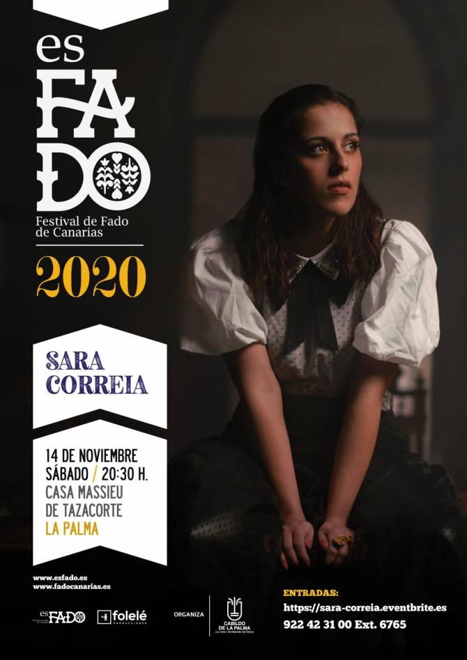 El área de Cultura del Cabildo de La Palma, que dirige Jovita Monterrey, organiza este sábado 14 de noviembre un concierto de la cantante portuguesa Sara Correia, dentro del Festival de Fado de Canarias 2020, que se ha reanudado tras la suspensión temporal como consecuencia de la declaración de alarma.