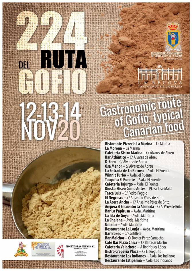 El Ayuntamiento de Santa Cruz de La Palma ha recuperado la Ruta del Gofio, que tendrá lugar los días 12, 13 y 14 de noviembre con la participación de 27 establecimientos de restauración ubicados en el casco urbano y de tres molinas de la Isla.