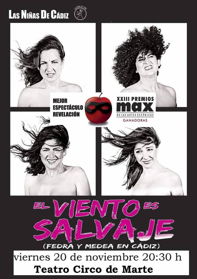 El Teatro Circo de Marte de Santa Cruz de La Palma acoge este viernes, a partir de las 20.30 horas, la puesta en escena de la obra ‘El viento es salvaje’ interpretada por ‘Las niñas de Cádiz’, comedia ganadora del premio MAX 2020 al mejor espectáculo revelación y que llega a la Isla en el marco del programa estatal Platea.