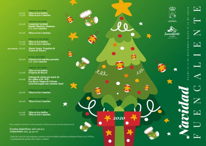 El Ayuntamiento de Fuencaliente inicia este viernes el programa de actos navideños, combinando actos religiosos, lúdicos, talleres para los más pequeños y actividades deportivas. El primero de los actos será el encendido del alumbrado de Navidad a partir de las 20:00 horas