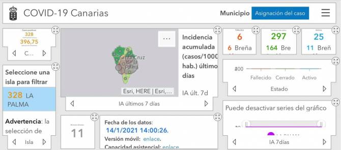 Por islas, Tenerife suma hoy 93 casos con un total de 14.592 casos acumulados y 4.873 casos activos epidemiológicamente; Gran Canaria cuenta con 11.887 casos acumulados, 127 más que el día anterior y 2.002 activos. Lanzarote suma 124 nuevos casos con 2.255 acumulados y 609 activos epidemiológicamente; Fuerteventura tiene 1.201 casos acumulados con 13 casos más que la jornada anterior y 194 activos. La Palma suma un nuevo caso, por lo que sus acumulados son 328 y sus activos se sitúan en los 25. La Gomera, debido a un ajuste estadístico, resta un caso a sus acumulados, por lo que son 207 y sus activos son 18. Por su parte, El Hierro sin casos nuevos, mantiene sus acumulados en 108 y en 22 sus activos.