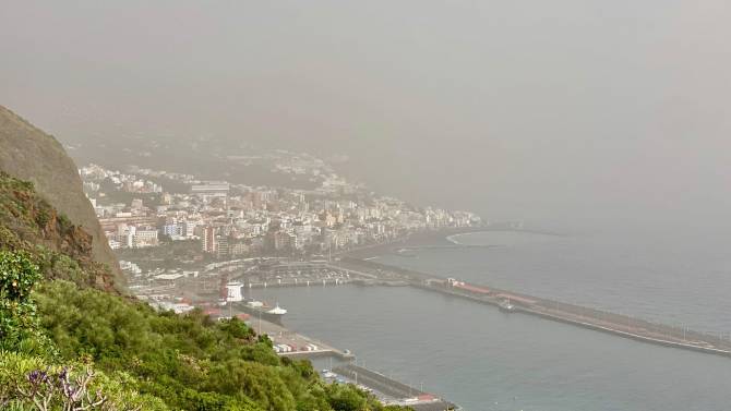 Desde primera hora de la mañana, la isla de La Palma amaneció bajo una espesa calima.