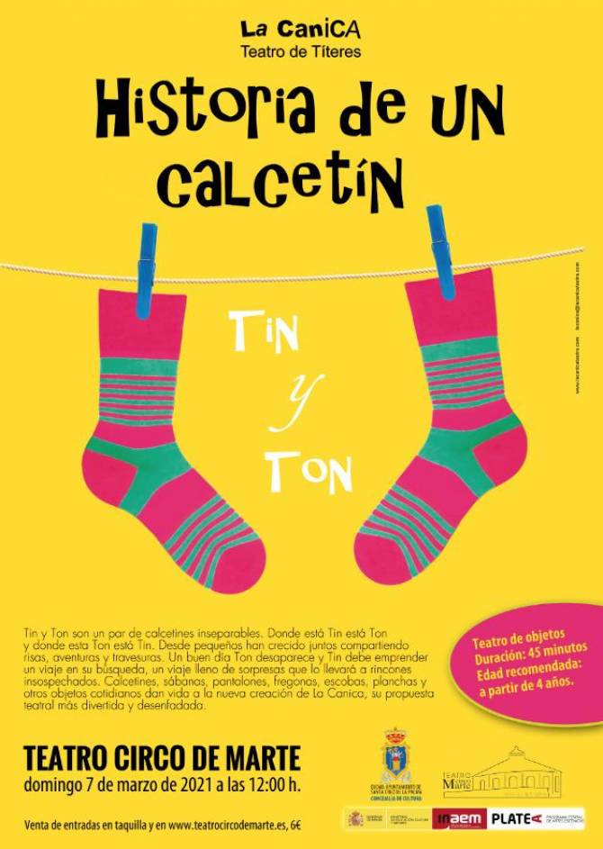 El Teatro Circo de Marte de Santa Cruz de La Palma acoge el próximo domingo, 7 de marzo, a partir de las 12.00 horas, el espectáculo ‘Historia de un calcetín’, una propuesta teatral en la que los objetos cotidianos toman vida y se convierten en protagonistas.