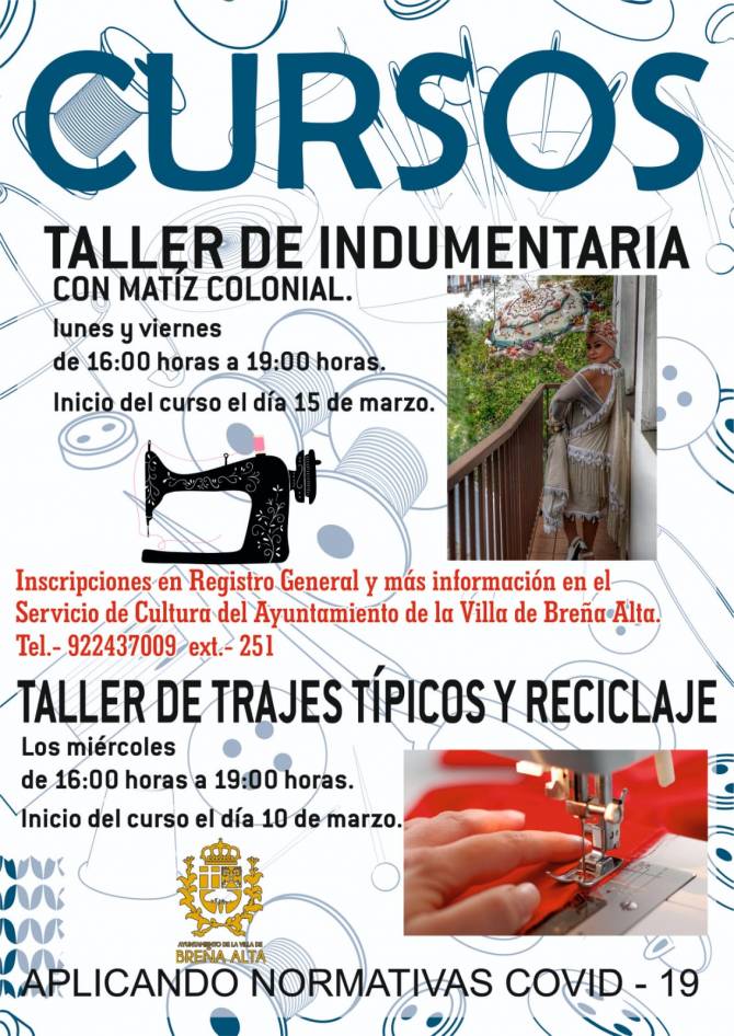 El Ayuntamiento de Breña Alta pone en marcha a partir del próximo 10 de marzo, un nuevo taller de trajes típicos y reciclaje que se llevará a cabo en el local 4Bajo de la Plaza Bujaz. Esta actividad se impartirá los miércoles desde las 16:00 horas hasta las 19:00. Se suma a esta actividad el taller de indumentaria 'Matiz Colonial' a partir del próximo 15 de marzo.
