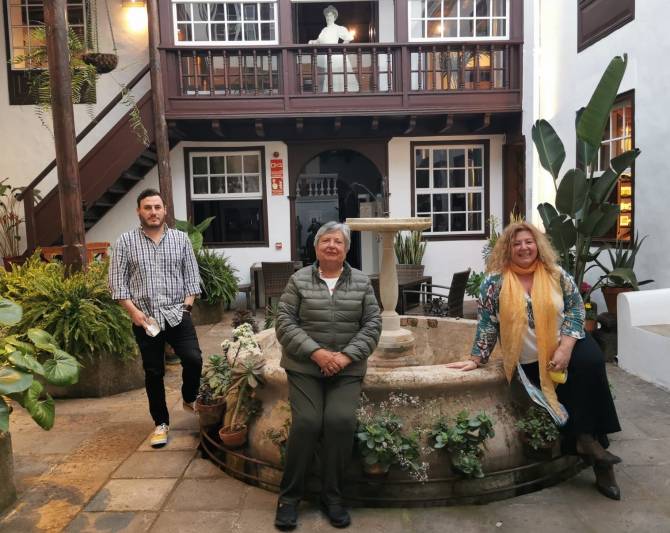 Pie de foto: Diego Álvarez Sosa (i), María Remedios Gómez (c) y Charo González (i) en la Casa-Museo Cayetano Gómez Felipe.