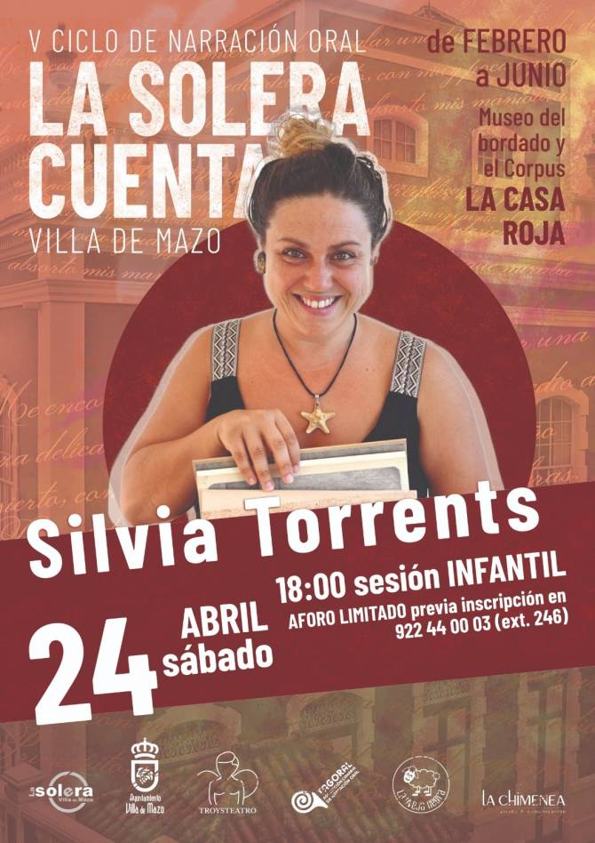 El Ayuntamiento de Mazo, a través de la Concejalía de Cultura, y enmarcado dentro de la programación de la celebración del Día del Libro, continúa con la tercera sesión del V Ciclo de Narración Oral La Solera Cuenta, un proyecto impulsado por el consistorio. La próxima sesión, dedicada a los más pequeños, será el sábado, 24 de abril, a las 18:00 horas, y correrá a cargo de la narradora Silvia Torrents, en el Museo Casa Roja.