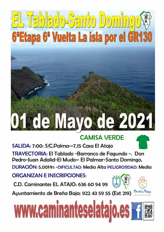 La caminata tendrá lugar este sábado 1 de mayo y está organizada por el C. D. de Caminantes "El Atajo" y la Concejalía de Deportes del Ayuntamiento de Breña Baja organizan.