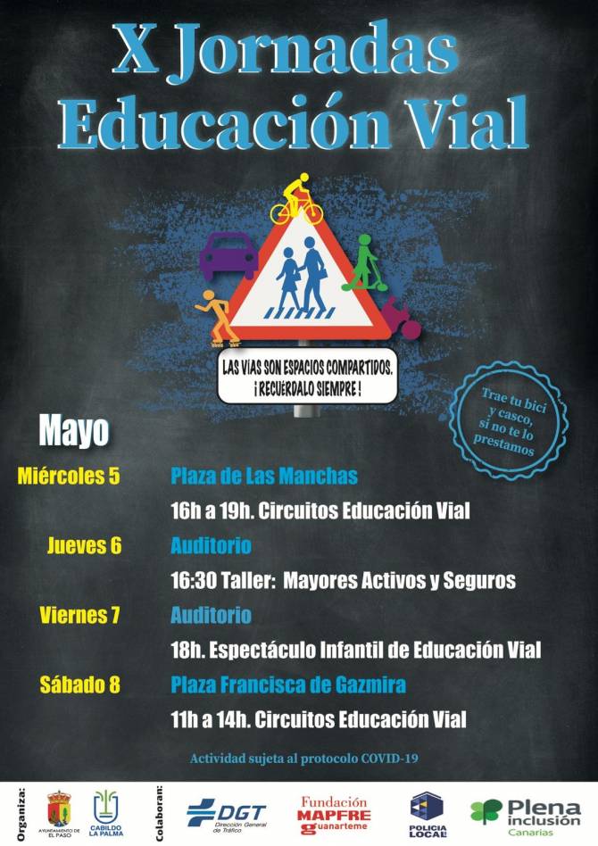 El Ayuntamiento de El Paso, junto a la consejería de Seguridad y Emergencias del Cabildo Insular de La Palma, organiza por décimo año consecutivo las Jornadas de Educación Vial, que se celebrarán desde el miércoles 5 de mayo, hasta el sábado 8 en el municipio y que acogerán actividades adaptadas a todas las edades.