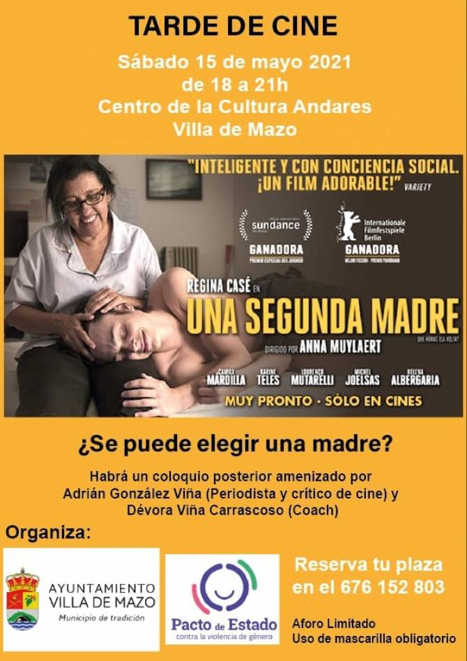 El Ayuntamiento de Villa de Mazo, a través de la Concejalía de Igualdad, organiza el segundo cinefórum de sensibilización para el próximo sábado, 15 de mayo, en el que se proyectará la película Una segunda madre, a la que seguirá un coloquio. La sesión que comenzará a las 18:00 horas, en el Centro de la Cultura Andares, está enmarcada en el proyecto Quiérete bien y acertarás.
