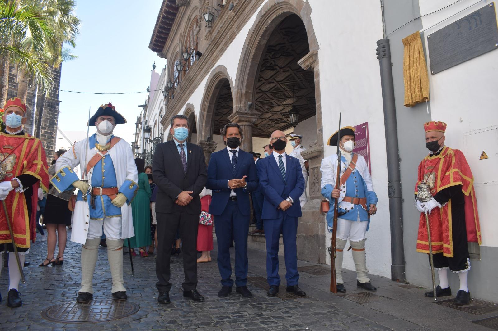 Tras el acto, el alcalde de Santa Cruz de La Palma, Juan José Cabrera, el presidente del Parlamento de Canarias, Gustavo Matos Expósito, y el diputado del Común, Rafael Yanes, han descubierto una placa en el número 1 de la calle O’Daly, sede del primer Juzgado de Indias en Canarias y donde residió gran parte de su vida.