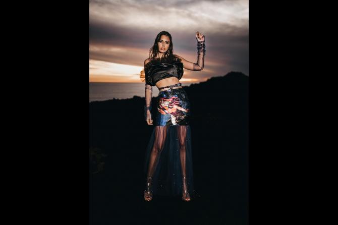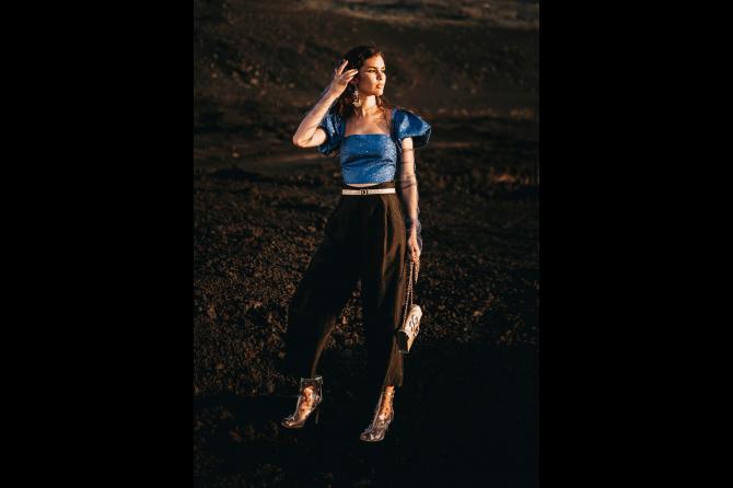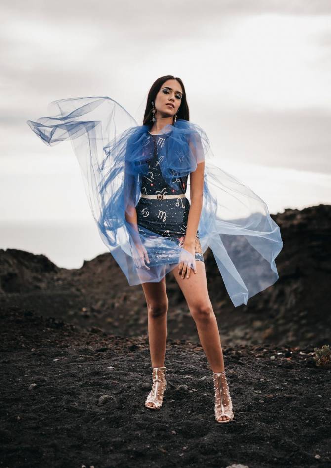 La campaña creada y pensada para resaltar el conjunto entre los enclaves volcánicos en contraste con las prendas del diseñador, piezas que tienen como inspiración la noche estrellada fuencalentera unidas la mitología griega y su representación de las constelaciones, las pinturas de frescos renacentistas que evocan el arte griego estampan prendas que juegan con los tonos nocturnos, creando una armonía entre brillos estelares.