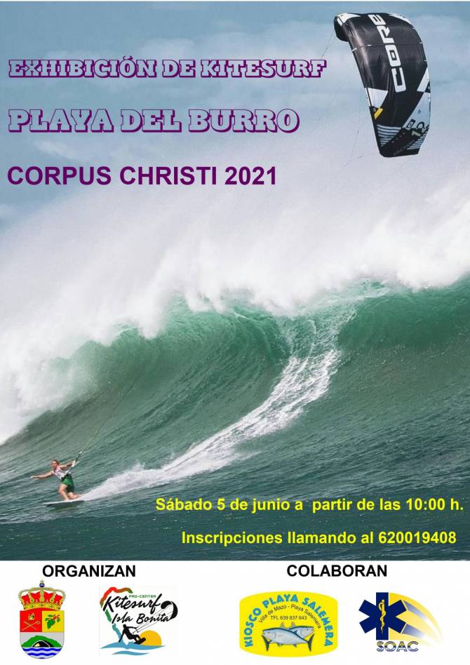 El Ayuntamiento de Mazo, a través de la Concejalía de Deportes, celebrará el próximo fin de semana una exhibición de kitesurf en la playa de El Burro en la que participarán un total de 25 deportistas. La iniciativa, organizada junto a la empresa Kitesurf Isla Bonita, forma parte del programa municipal de actividades del Corpus Christi 2021.