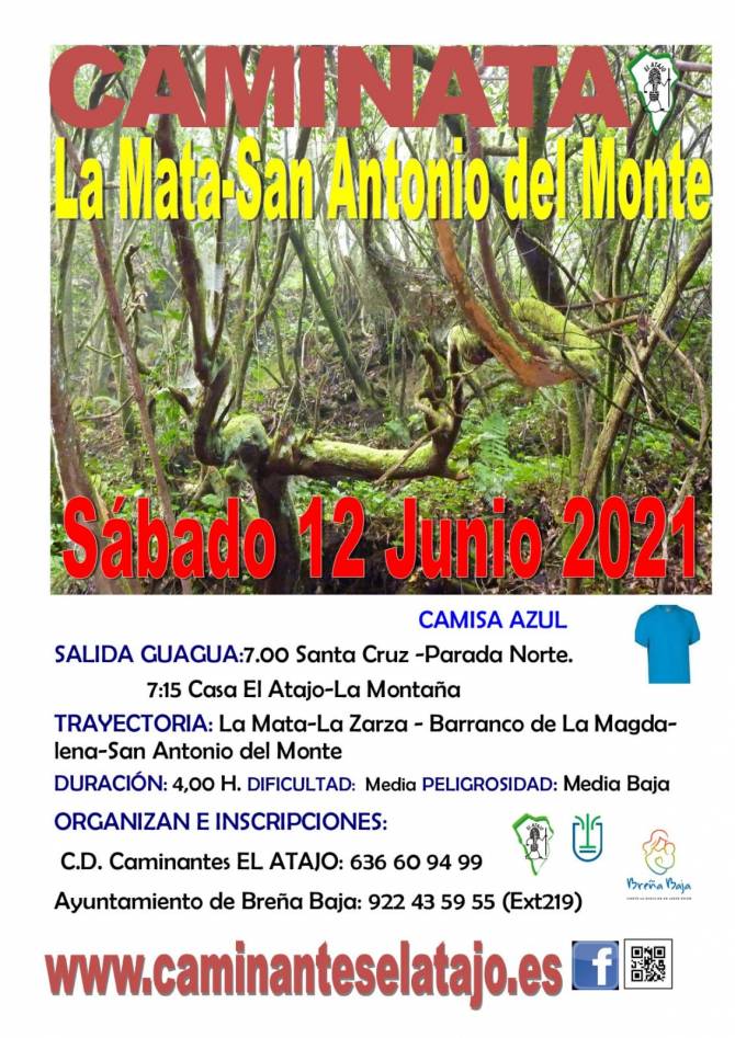 Este sábado 12 de Junio, el C. D. de Caminantes "El Atajo" y el Ayuntamiento de Breña Baja organizan, dentro del Programa de Senderismo de Breña Baja, la caminata nº 703: "La Mata - San Antonio del Monte".