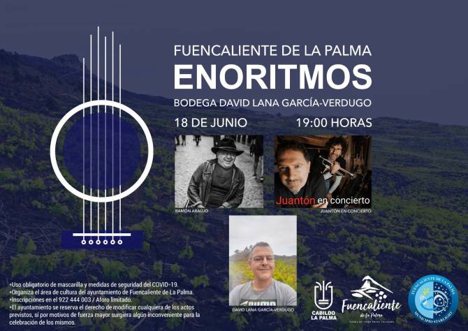 El Ayuntamiento de Fuencaliente, a través de su Concejalía de Cultura, ultima los detalles para la celebración el próximo 18 de junio de la cuarta edición del festival Enoritmos, que permitirá disfrutar de la música del músico y compositor barcelonés Juantón y del humor del gallego-palmero Ramón Araujo.