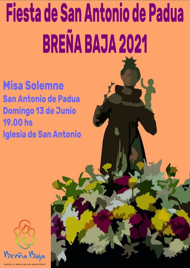 Este domingo 13 de junio se celebra el Día de San Antonio de Padua 2021 en Breña Baja con la celebración de la ceremonia religiosa. Por segundo año consecutivo y ante la situación de la emergencia sanitaria del Covid 19 no se ha podido realizar un programa de actos culturales y festivos que acompañen a esta celebración como en años anteriores.