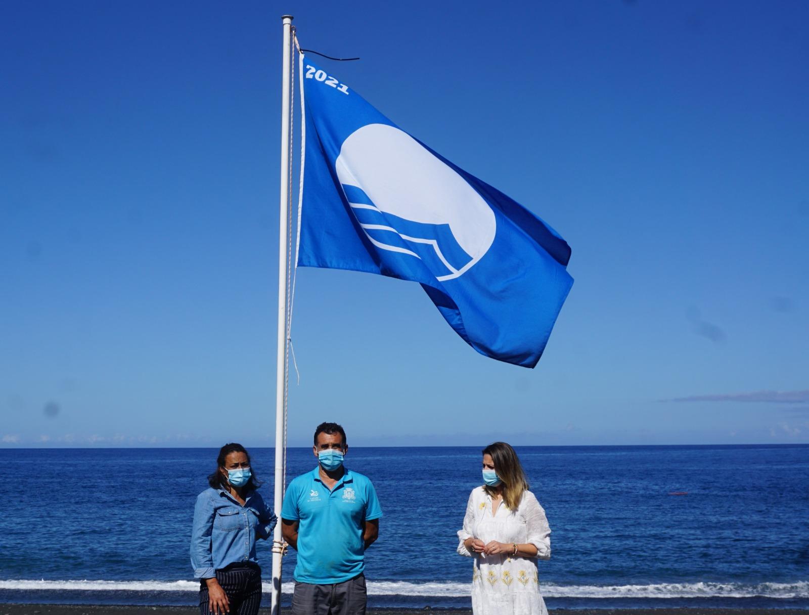 En las playas de Puerto Naos y Charco Verde ya ondea desde esta semana, la Bandera Azul, que ha sido izada por la concejala de Playas, Mónica González e Inmaculada Fernández responsable del área de Turismo del Ayuntamiento de Los Llanos de Aridane.