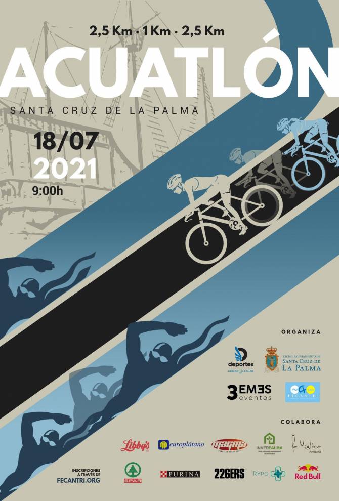 El Ayuntamiento de Santa Cruz de La Palma informa de que a partir de hoy, 28 de junio, y hasta el sábado, 10 de julio, a las 23:59 horas, permanecerá abierto el plazo de inscripción para participar en las competiciones de Triatlón y Acuatlón organizadas por 3EMES Eventos, en colaboración con el Consistorio, la Federación Canaria de Triatlón y el Cabildo de La Palma.