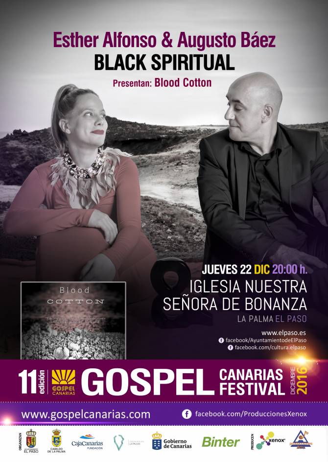 El góspel llega de nuevo a El Paso por Navidad, el próximo jueves día 22 en la Iglesia de Nuestra Señora de Bonanza y desde las 20:00 horas, E&A Jazz presenta 'Blood Cotton'. Este dúo está formado por la cantante Esther Alfonso Da Costa y el pianista Augusto Báez. El dúo se consolida en junio del 2014 en el Ateneo de La Laguna, continuando su trayectoria actuando en varias salas del archipiélago.