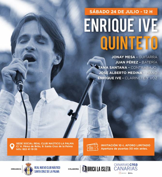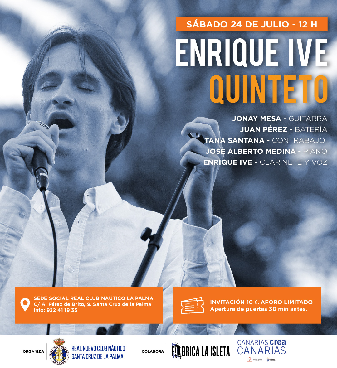 El sábado, 24 de julio a las 12.00 horas, como parte de la programación cultural del Real Club Náutico de Santa Cruz de La Palma, se celebrará un concierto en la Sede Social ubicada en la C/A. Pérez de Brito, 9 en Santa Cruz de La Palma, dirigido al público en general a cargo de la Banda de Jazz ENRIQUE IVE QUINTETO.