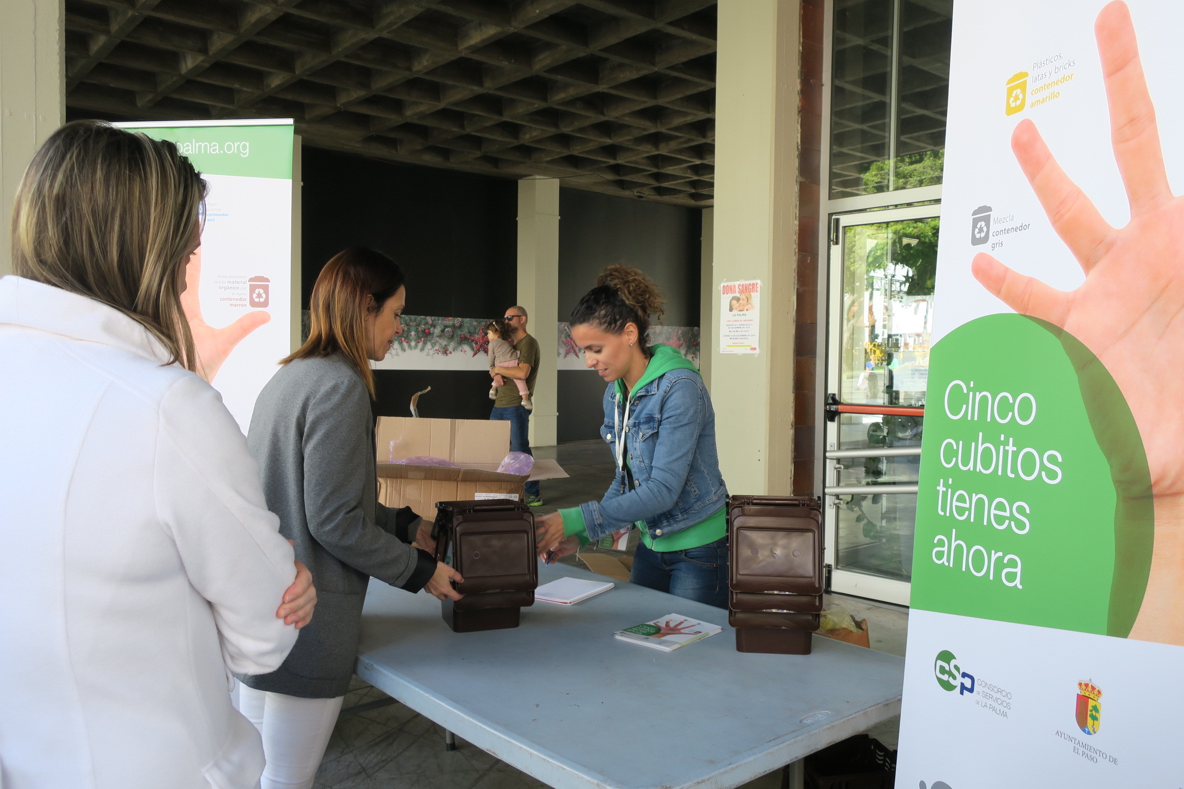 El Cabildo de La Palma, a través del Consorcio de Servicios, y el Ayuntamiento de Los Llanos de Aridane pusieron en marcha el lunes, 12 de diciembre, la campaña de información y sensibilización orientada a dar a conocer el nuevo servicio de recogida de biorresiduos en el municipio. Con el eslogan Cinco cubitos tienes ahora, tiene como principal objetivo informar a los vecinos de Los Llanos de Aridane y a los establecimientos con mayor capacidad de generación de estos residuos, como bares, cafeterías o supermercados, de la incorporación del denominado “quinto contenedor” o contenedor marrón, que se suma a los ya existentes para facilitar la separación de materia orgánica.