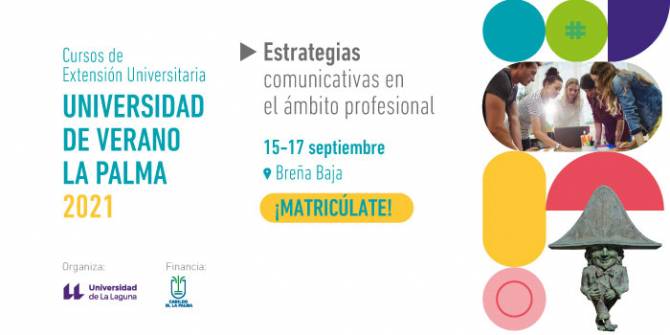 Bajo el título “Estrategias comunicativas en el ámbito profesional” la Concejalía de Educación del Ayuntamiento de Breña Baja colabora con la “Universidad de Verano de La Palma 2021”, a través de este curso perteneciente a la programación de la convocatoria de Cursos de Extensión Universitaria de la Universidad de La Laguna, que se celebrará en modalidad presencial los días 15, 16 y 17 de septiembre en la Biblioteca Pública Municipal “Mauro Fernández Santos” en San Antonio.