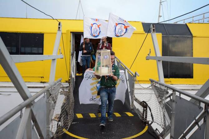 La Luz de la Paz de Belén llegó al puerto tinerfeño después de las cinco y media de este viernes. Una representación de los Scouts católicos subía al barco para realizar la primera acogida tanto de este símbolo navideño y de paz como de los compañeros, Acerina y Jesús, que la habían trasladado desde Logroño. A donde había llegado procedente de Viena tras ser traída de Belén.