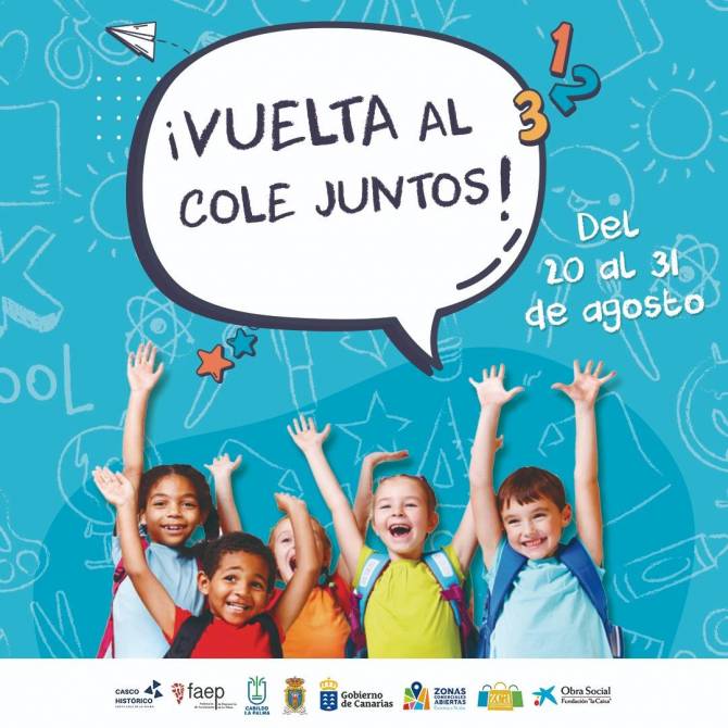 La campaña “Vuelta al cole juntos” está organizada por la Asociación de Empresarios Casco Histórico de S/C de la Palma y cuenta con la colaboración de la Federación de Asociaciones de Empresarios de La Palma (FAEP), el Ayuntamiento de S/C de la Palma, el Área de Comercio del Cabildo Insular de La Palma y la Dirección General de Comercio del Gobierno de Canarias y la Fundación CaixaBank para dinamizar las zonas comerciales abiertas en los diferentes períodos del año.