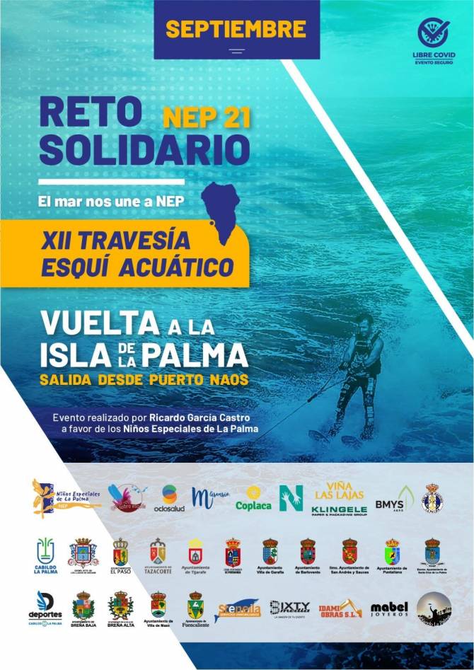 El Reto Solidario NEP 21 surge por la iniciativa del esquiador Ricardo García Castro, quien propone dar la vuelta a la isla de la Palma, bajo el slogan “El mar nos une a NEP”.