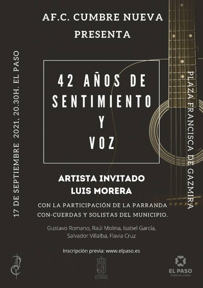 ’42 Años de Sentimiento y Voz’ es el título elegido para el espectáculo que se celebrará el próximo viernes 17 de septiembre a las 20:30h en la plaza Francisca de Gazmira. Las inscripciones pueden formularse a través de la web institucional www.elpaso.es